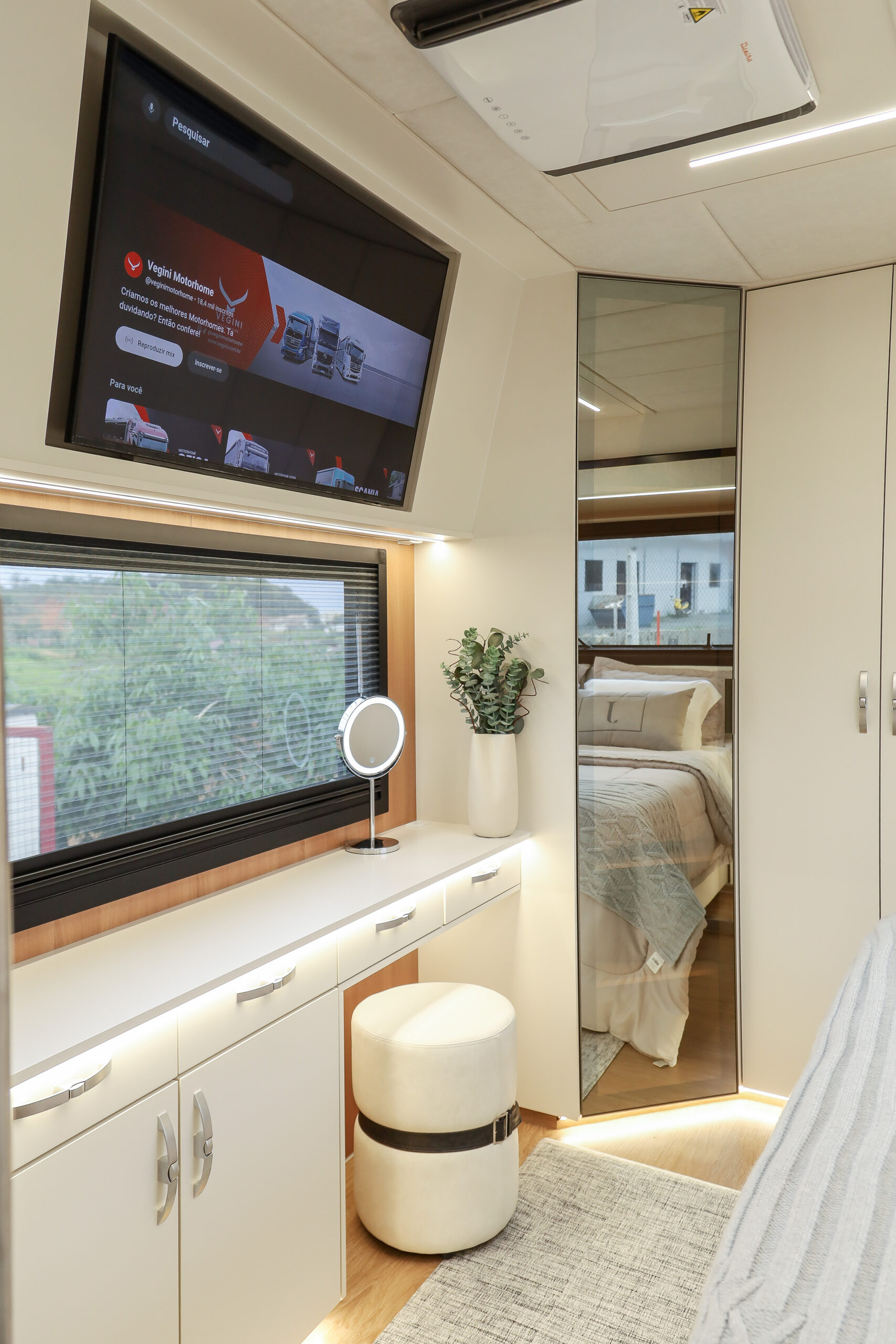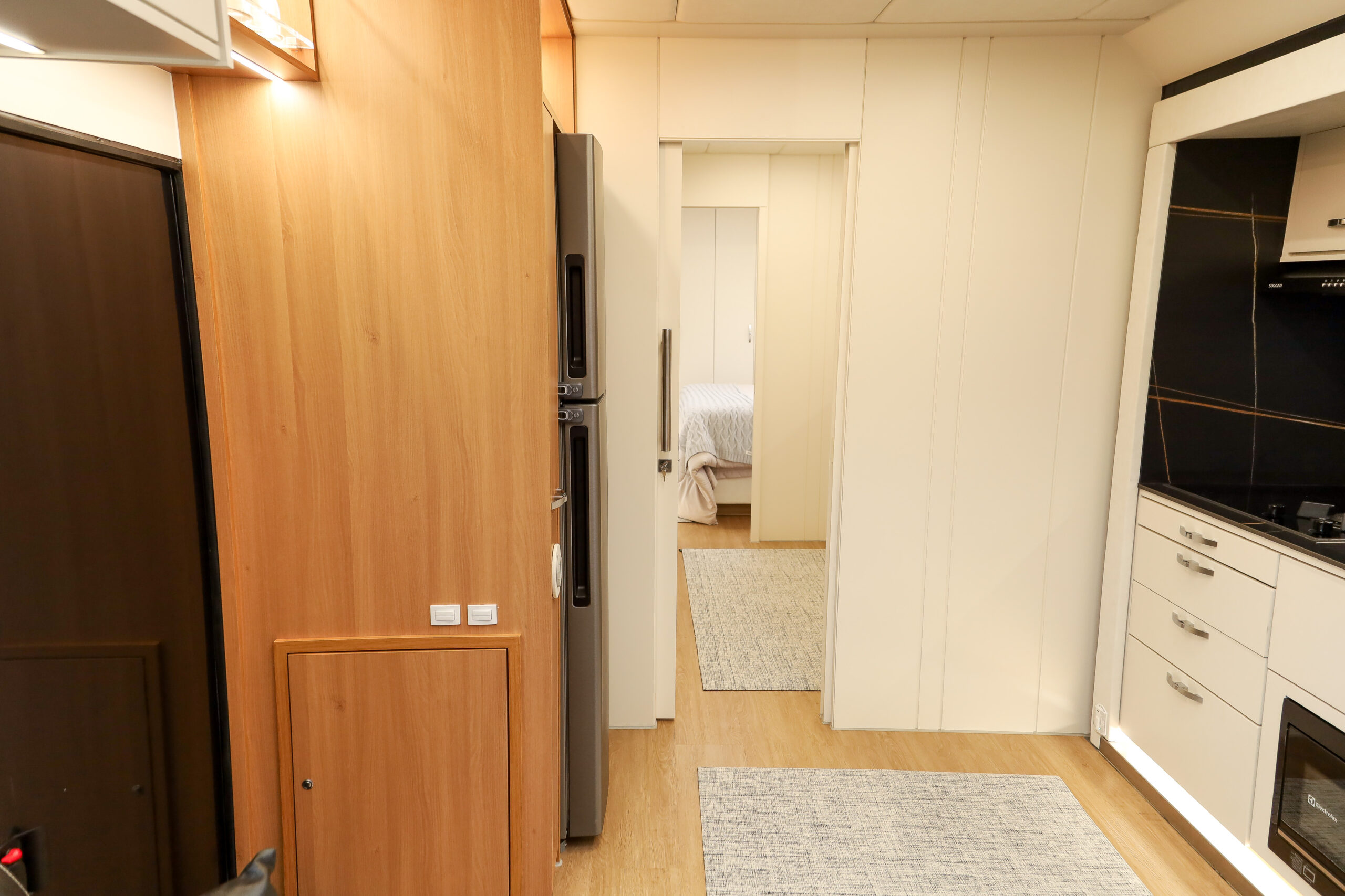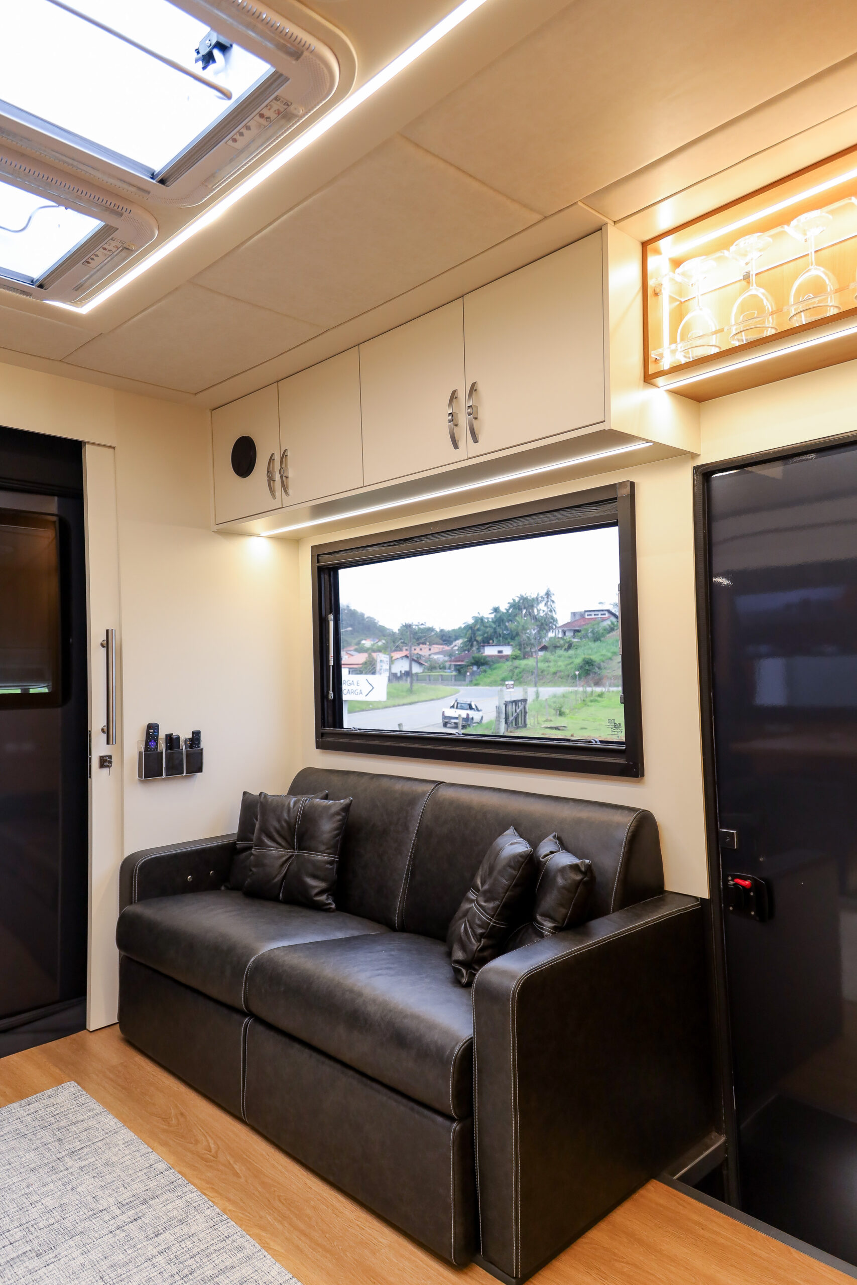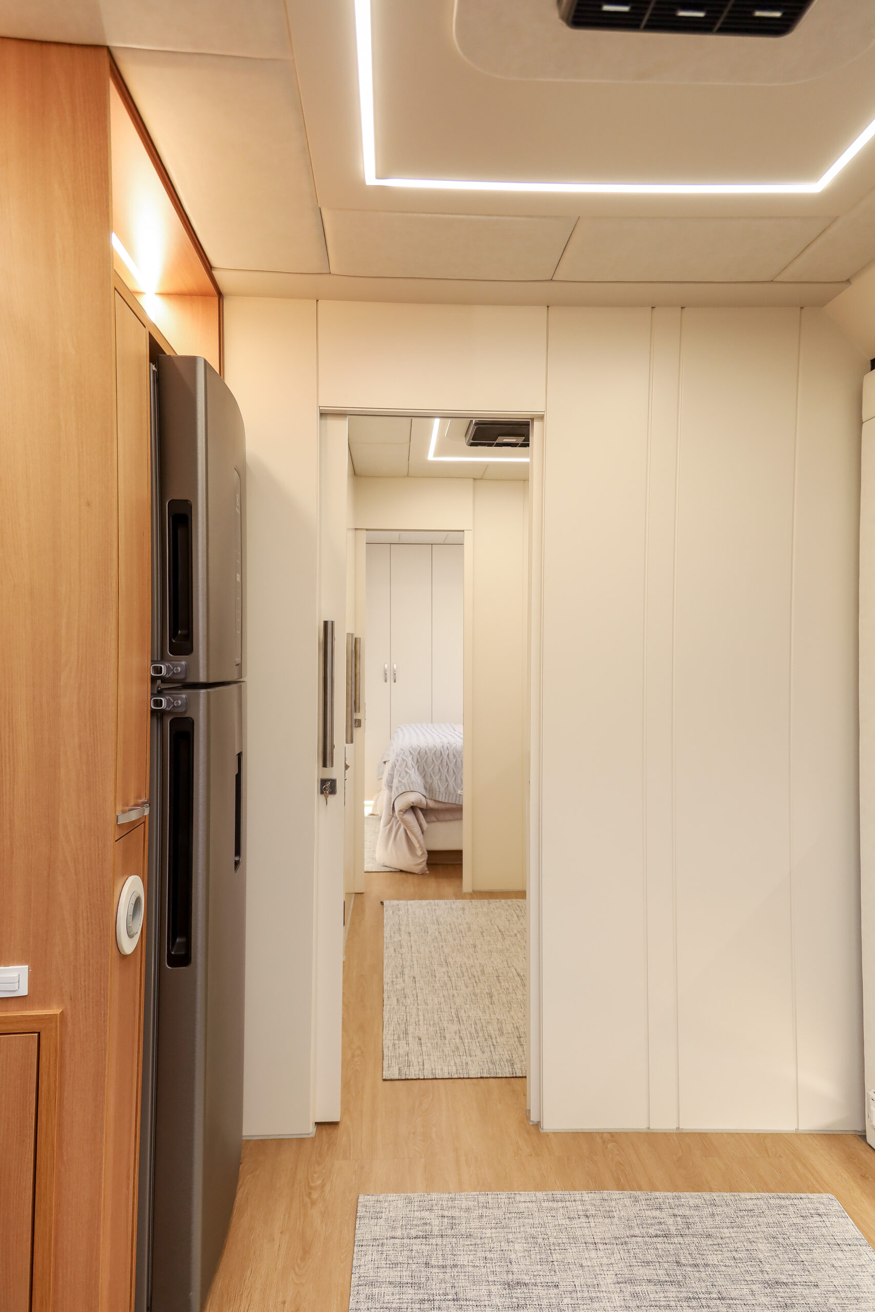 Integração parcial de cabine com porta dupla blindada de passagem;