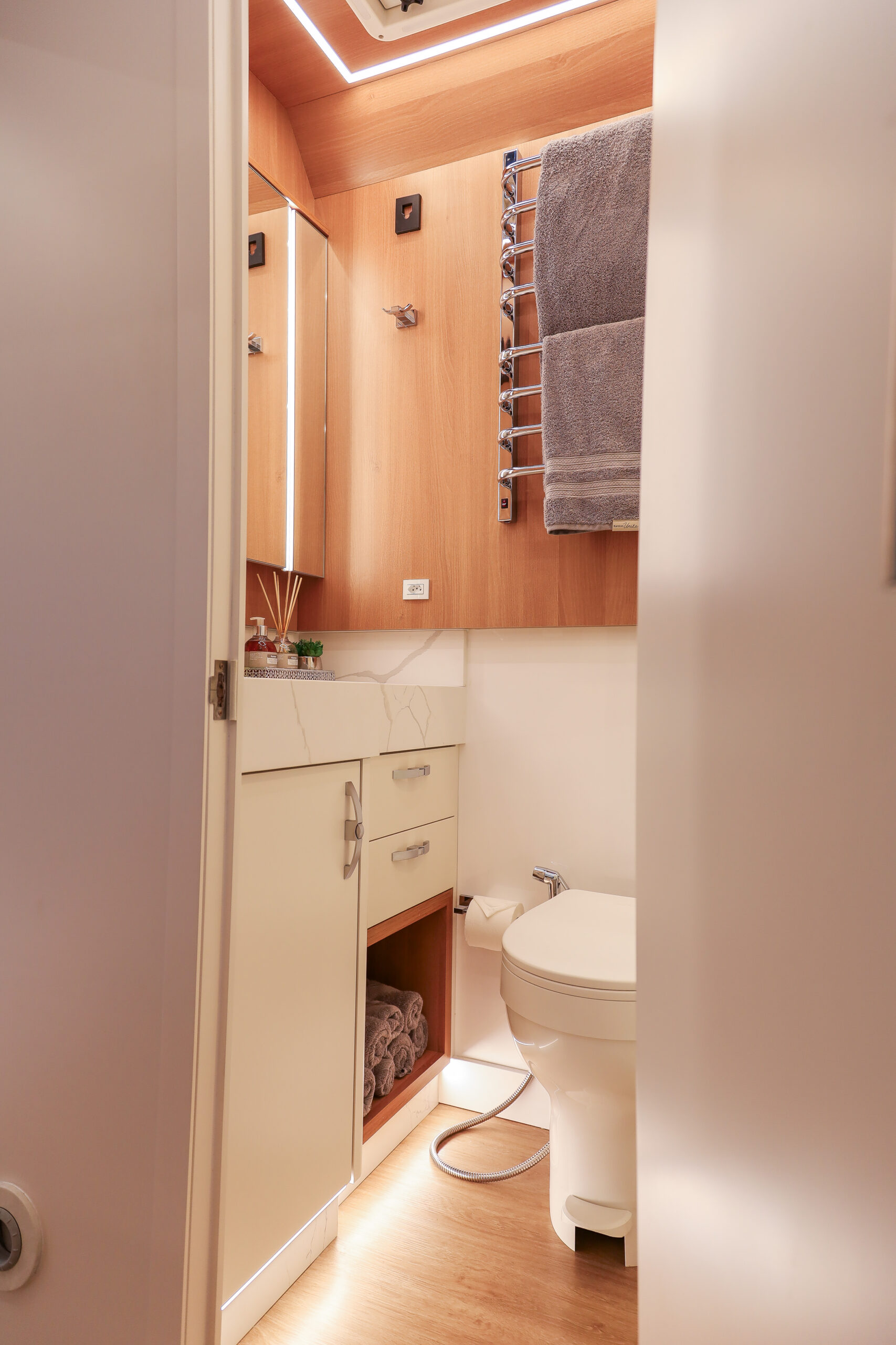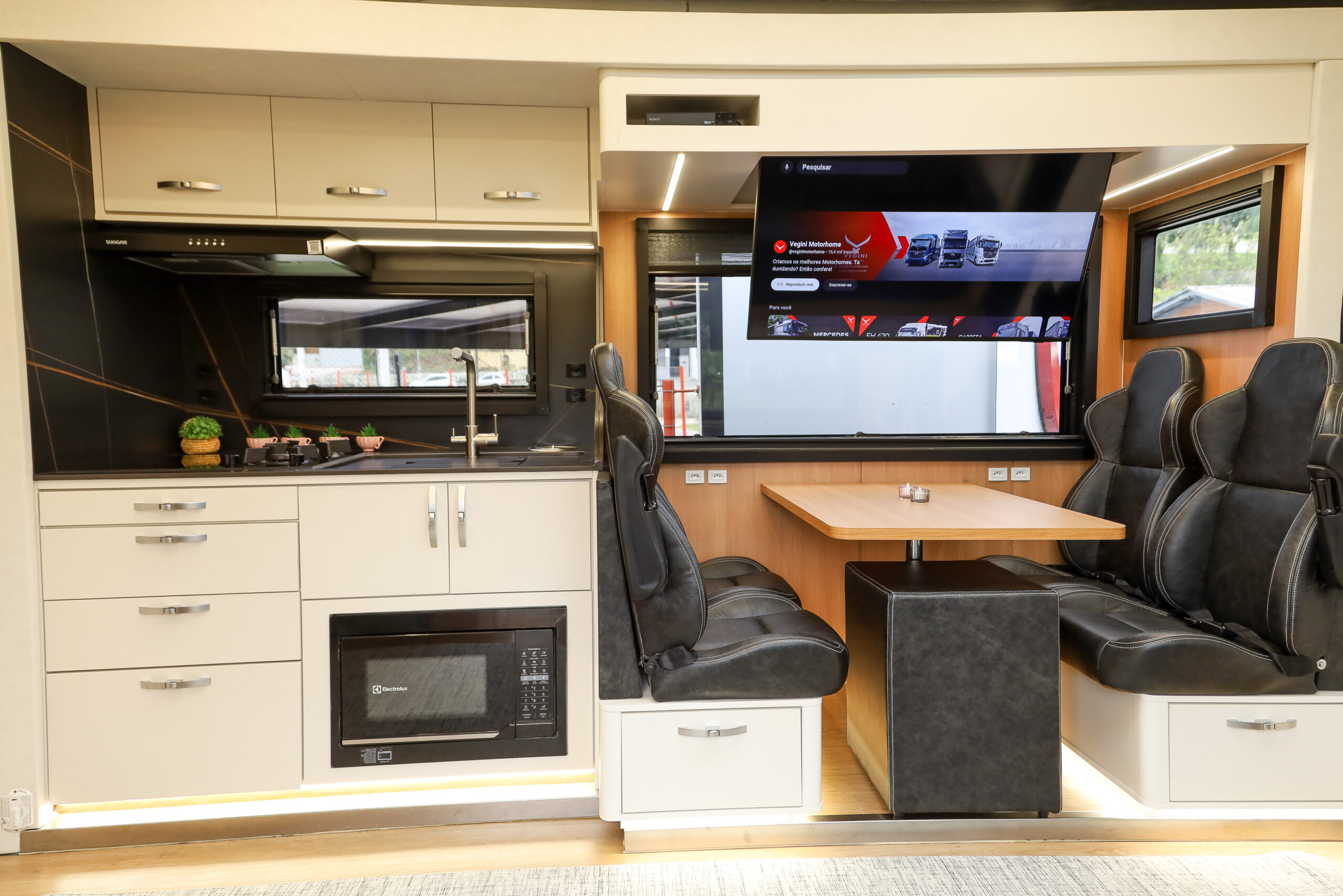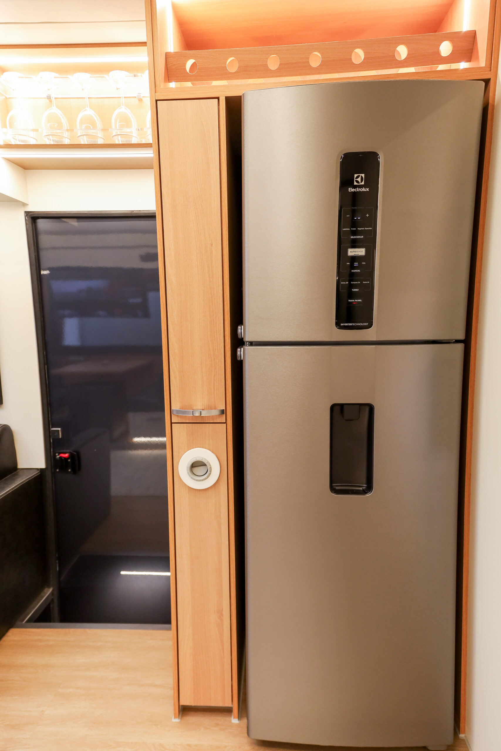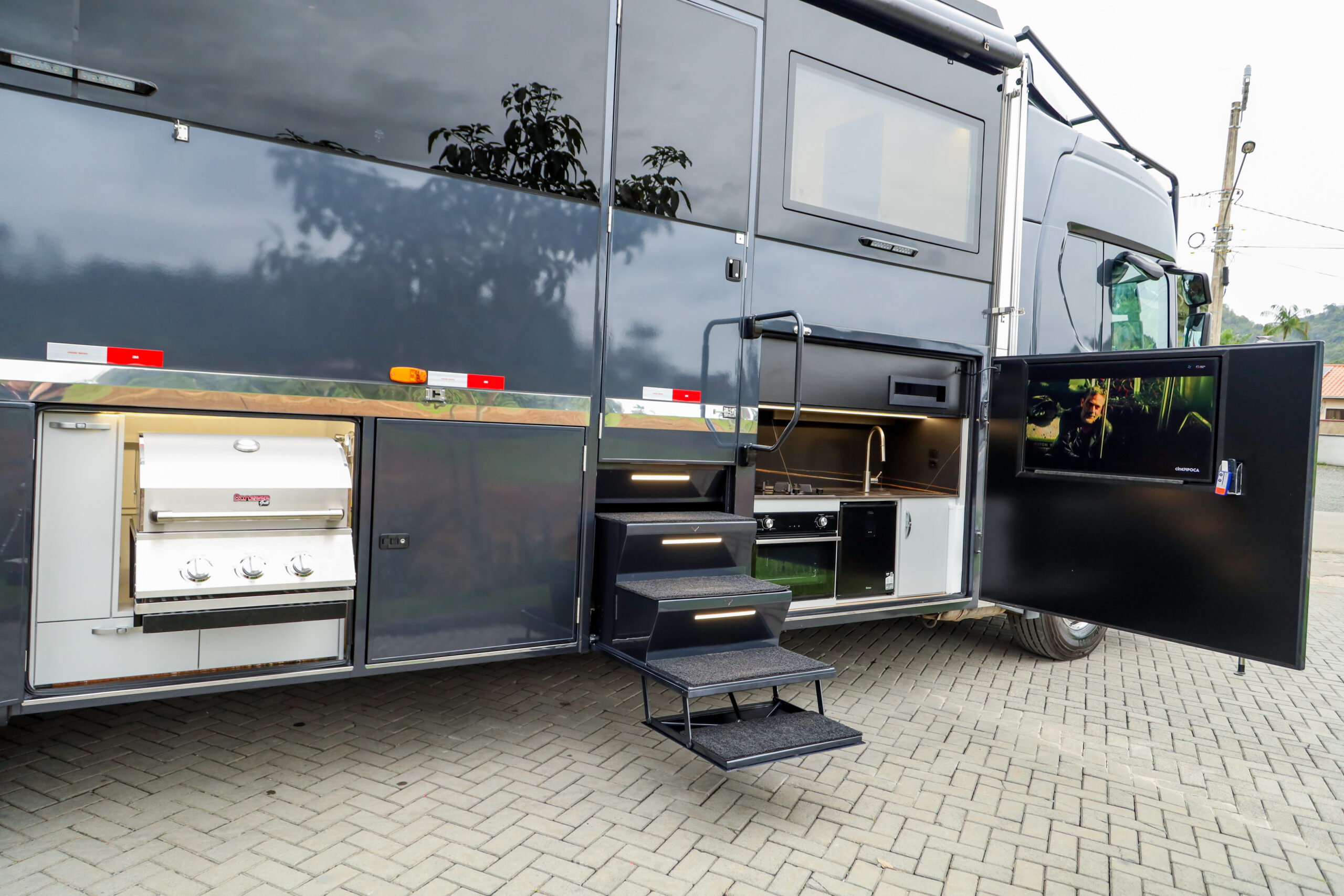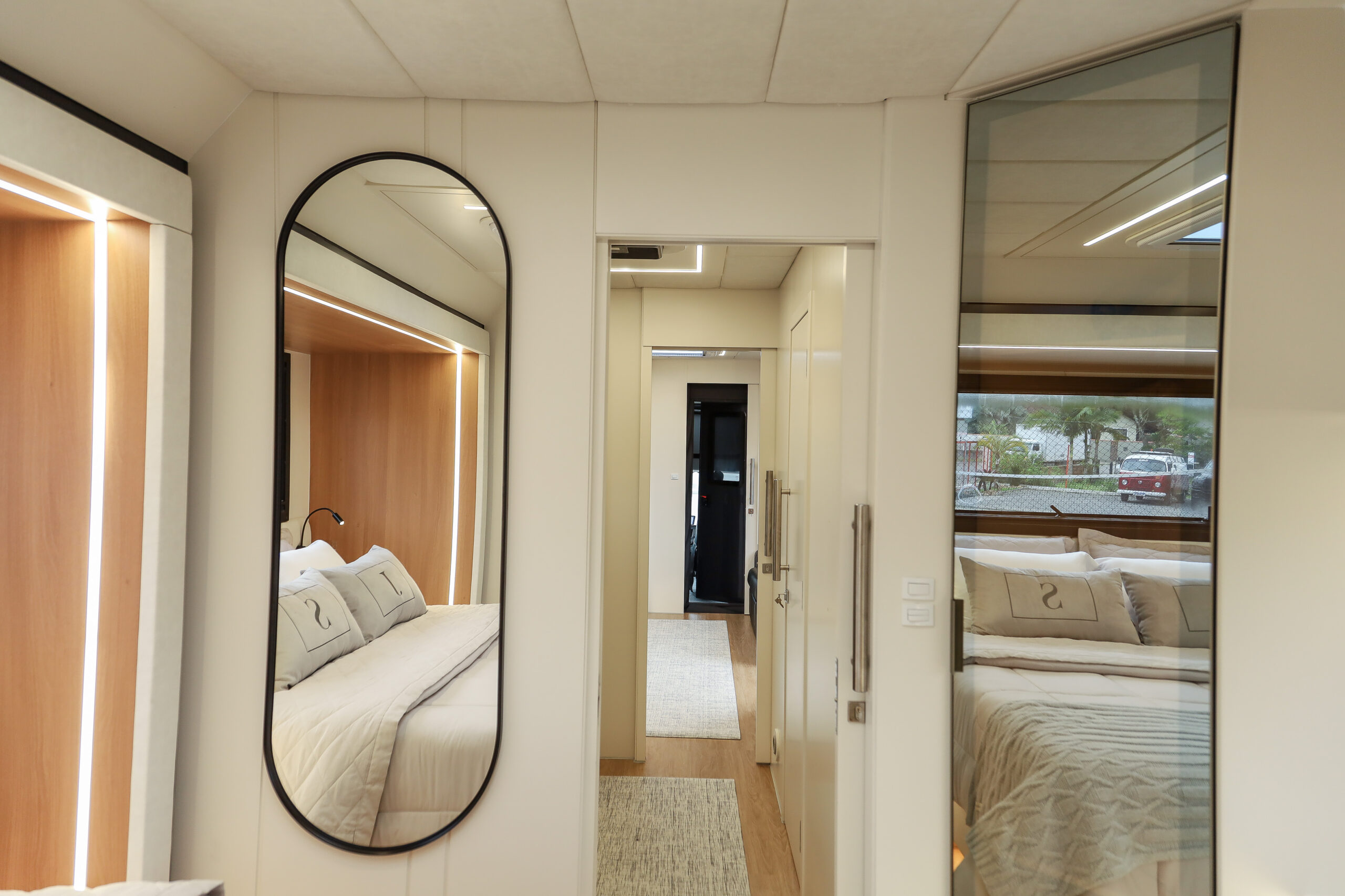 Integração parcial de cabine com porta dupla blindada de passagem;